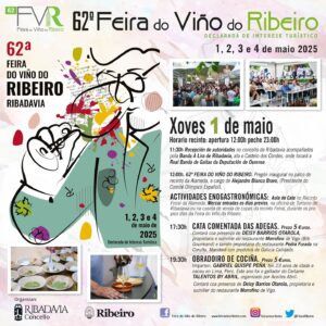 Celébrase do 1 ao 4 de maio a 62ª Feira do Viño do Ribeiro e estas son todas as actividades que se levarán a cabo durante estas festas.