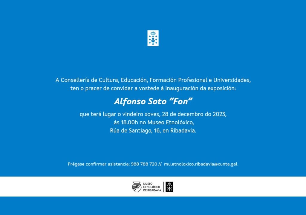 El Consejo de Cultura, Educación, Formación e Universidades, tiene el placer de invitarle a usted a la inauguración de la exposición: Alphonso Soto «Fon»